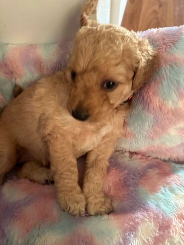 These are multigenerational Goldendoodles. Both parents are DNA/Health tested and Kirby has OFA hip and elbow testing.